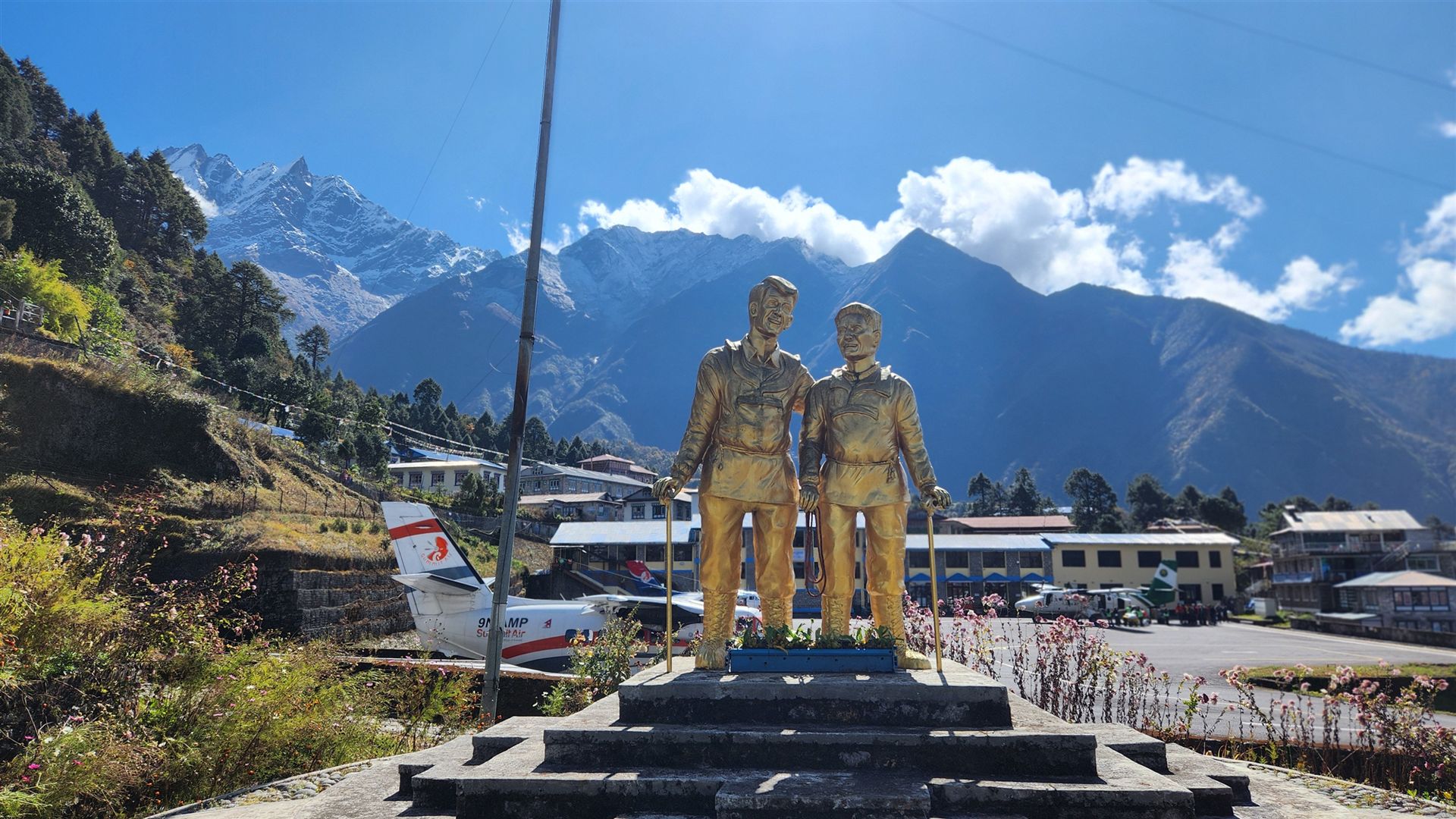 Sehr frühe Fahrt (1 Uhr) zum Flughafen Ramechhap (ca. 5 Stunden) und Flug nach Lukla, 2846 m. Zwischen Flughafen und dem Ort Lukla passiert man eine Bronzestatue mit den Erstbesteigern des Mt. Everest, Edmund Hillary und Tenzing Norgay. Wanderung nach Phakding, 2610 m.