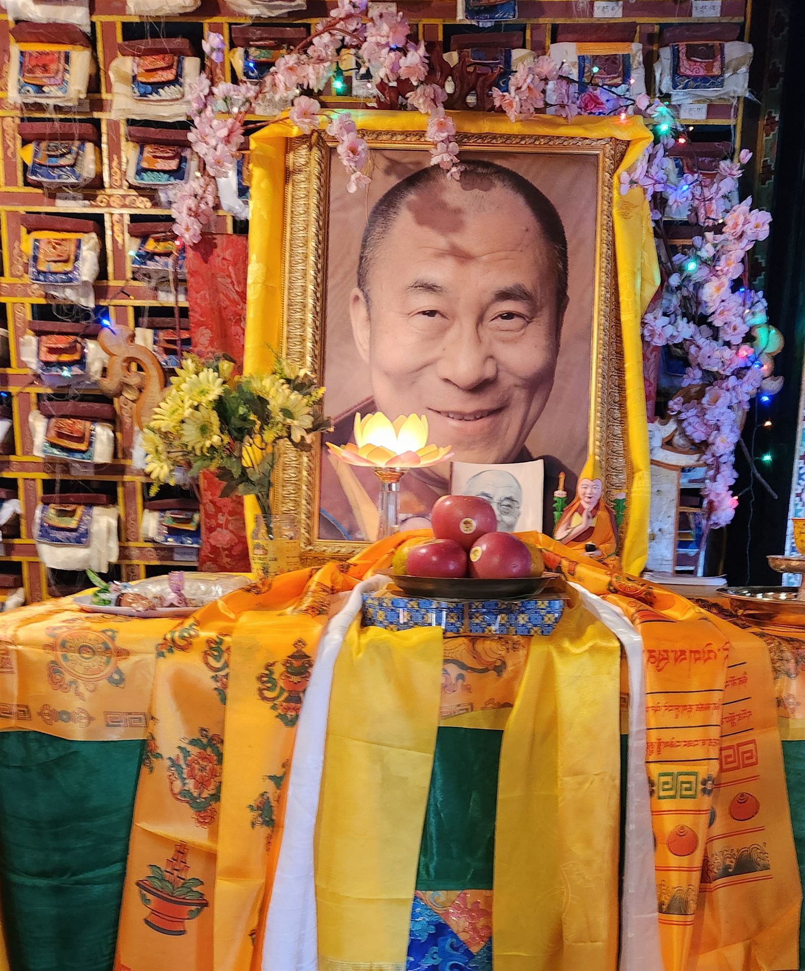 An erster Stelle stehen natürlich die Gebetsfahnen. Die verschiedenen Farben stehen für die Elemente (Wasser, Luft, Feuer usw.). Der Wind soll die Gebete in die Welt hinauswehen.