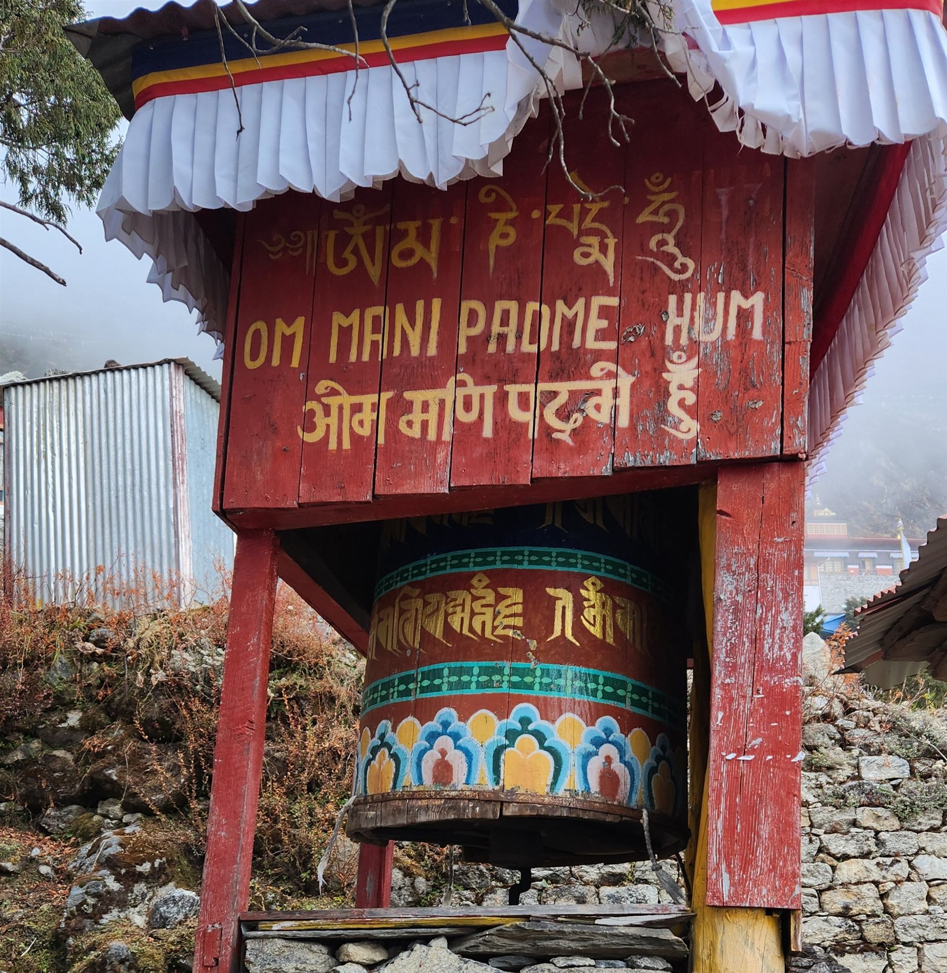 Gleich zu Beginn des Trails hinter Lukla trifft man auf die ersten Gebetsmühlen (Mani-Räder). Das sind drehbare Zylinder mit Mantras (Gebeten). Jede Drehung steht für das Aussprechen des Mantras. Gebetsmühlen gibt es in verschiedenen Größen. Kleinere Gebetsmühlen reihen sich häufig in größerer Zahl aneinander. Beim Vorbeilaufen dreht man die Mühlen im Uhrzeigersinn. Es gibt aber auch große Gebetsmühlen, die ganze Räume füllen, in denen man selbst im Uhrzeigersinn um die Gebetsmühle herumläuft und diese mitdreht. Das ist dann mit einem regelmäßigen Glockenton verbunden. In Namche Bazaar werden große Gebetsmühlen sogar mit Wasserkraft angetrieben.