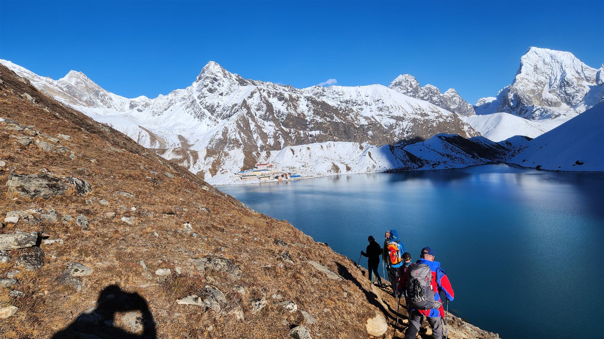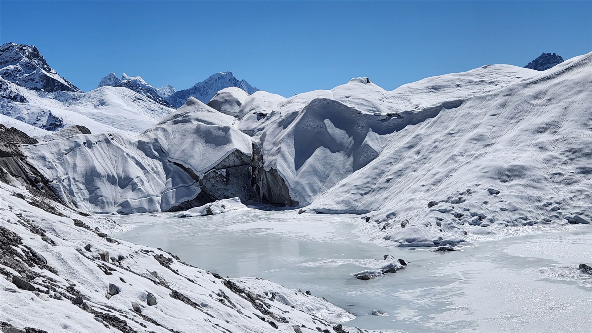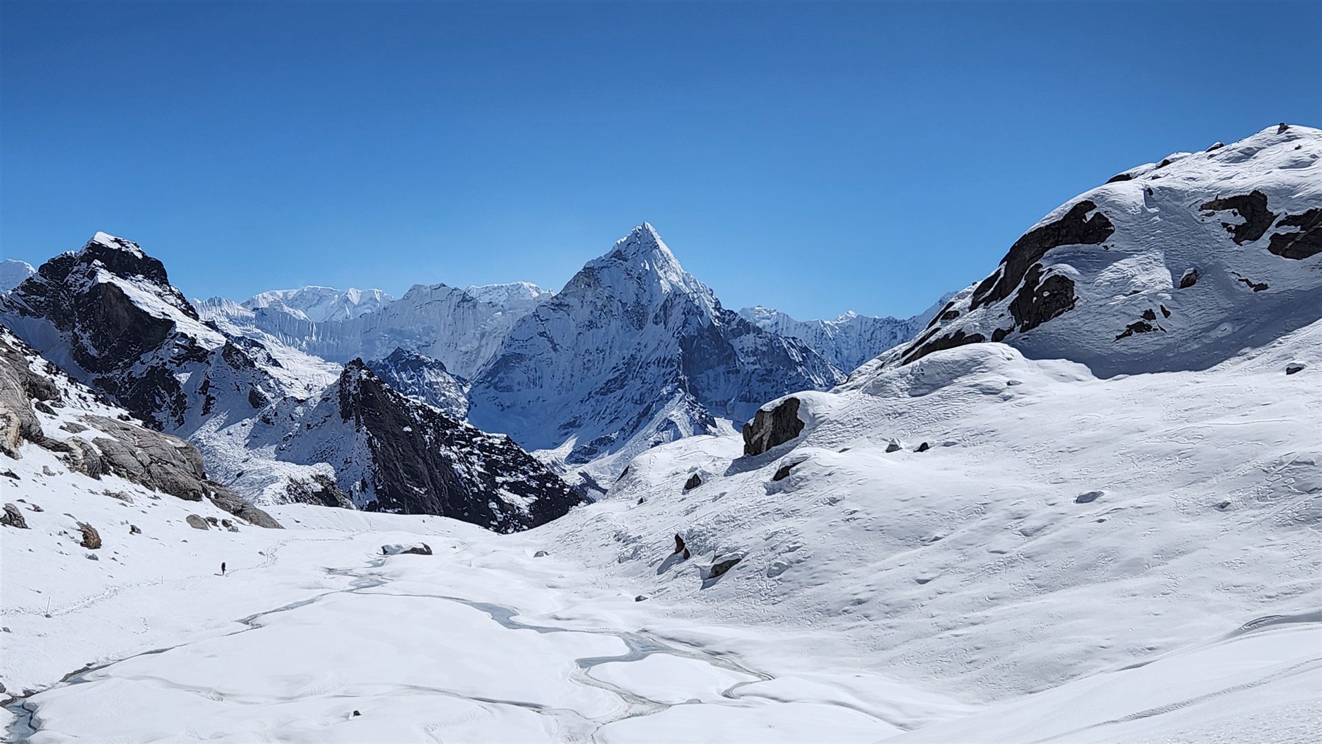 Wanderung über den Ngoozumba Tse Gletscher nach Thagnak, 4700 m