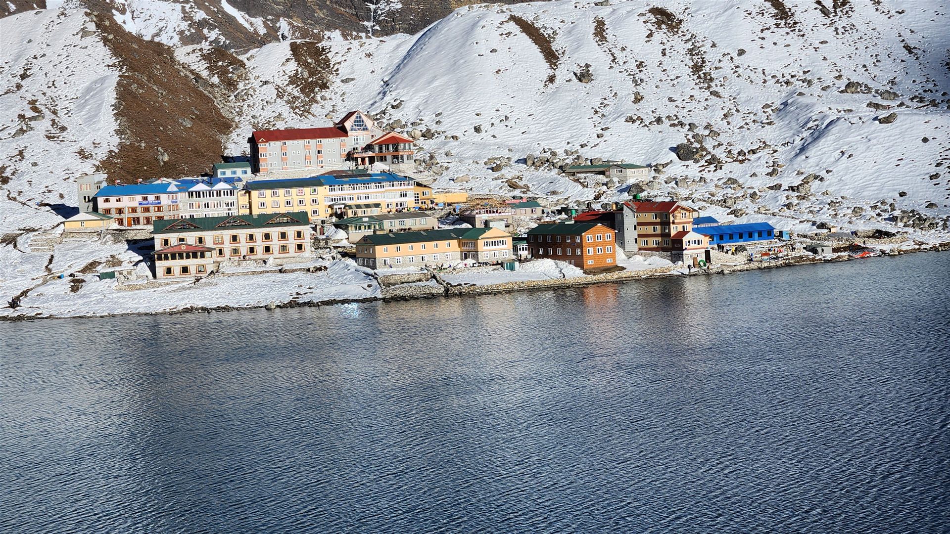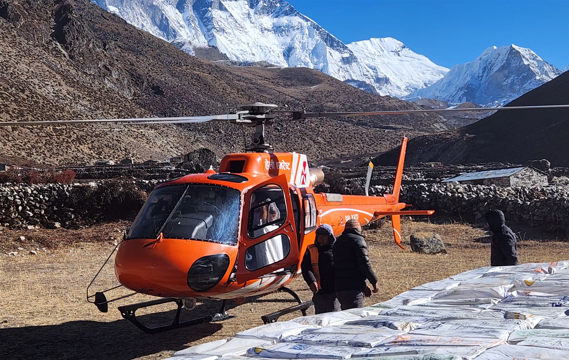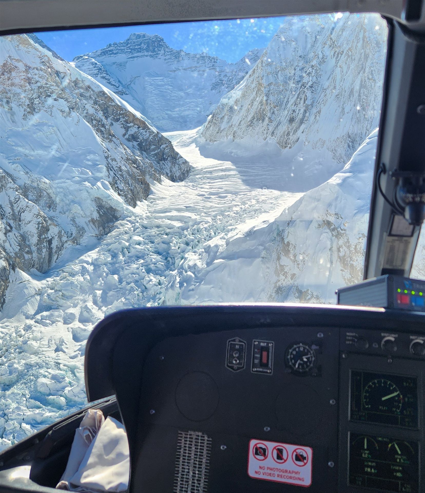 Erstaunlich war, dass Sarah, die junge Pilotin, aus Neuseeland stammte. Es gibt schon interessante Jobs. Auch war der Hubschrauber beim Anflug, bevor wir einsteigen konnten, mit Baumaterial beladen, das erst einmal ausgeladen wurde. Wenn also schon ein Hubschrauber von Lukla oder Namche Bazaar nach oben fliegt, dann wird das zweckmäßigerweise genutzt. Leer fliegt kein Heli. Rabatt haben wir trotzdem nicht erhalten. LOL.