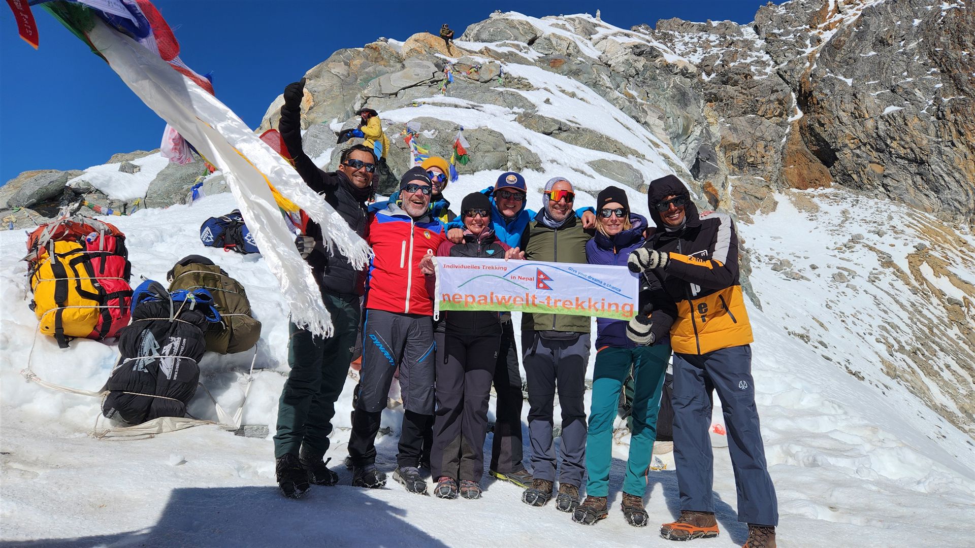 Unsere Tour verlief nicht auf dem direkten Weg von Lukla zum Everest Base Camp, sondern über 3 Pässe (deshalb 3-Pässe-Trek). Das bedeutete eine gewisse Herausforderung abseits der frequentierten Hauptroute. Die Reisegruppe bestand aus 6 Teilnehmern.