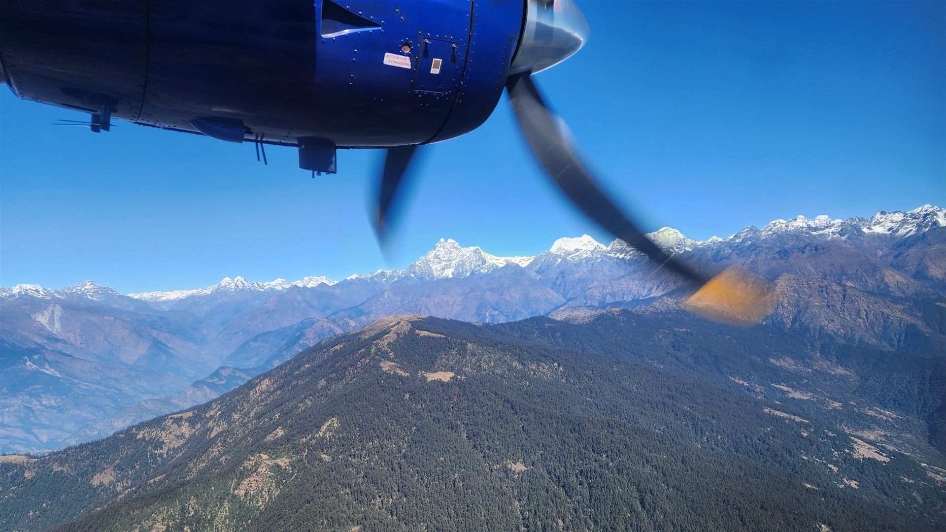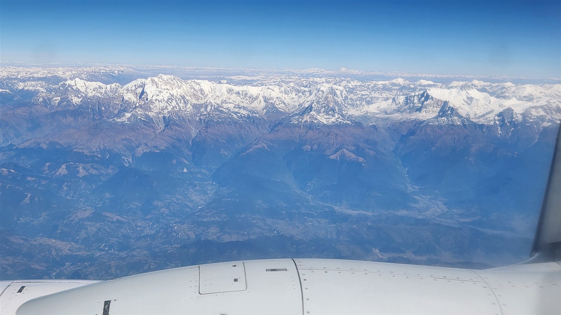 Auf dem Hin- und Rückflug nach und von Kathmandu sieht man die Gipfel von Dhaulagiri (Nr. 7), Manaslu (Nr. 8) und Annapurna (Nr. 10). Ich war mir im Flugzeug aber nicht im Klaren, welche Gipfel es waren. Vielleicht kannst Du auf dem Bild etwas erkennen.