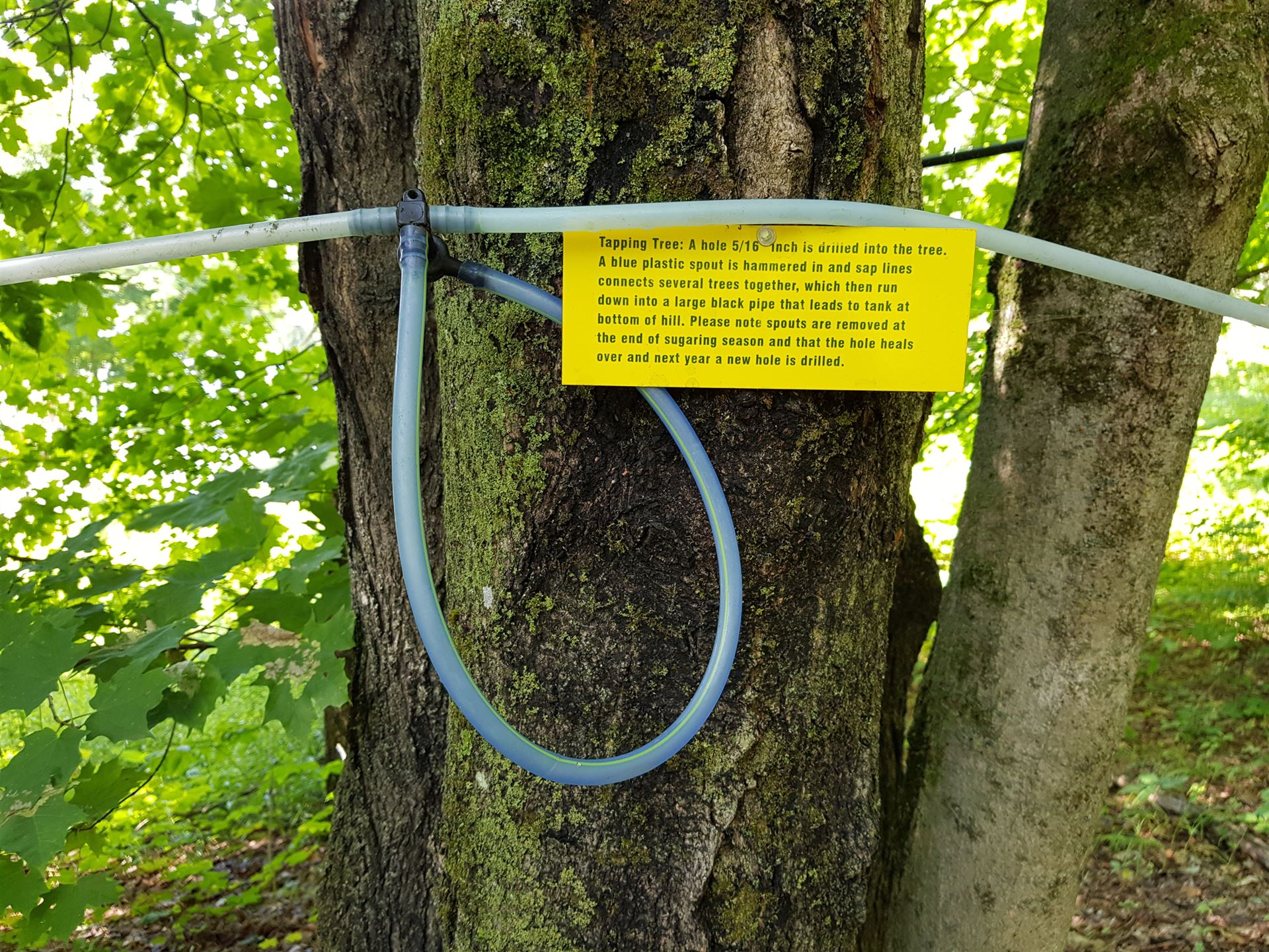 Hinter dem Parkplatz ist ein kleiner Streichelzoo angelegt. Am Hang oberhalb des Parkplatzes führt der Lehrpfad Maple Walk auf einem kurzen Rundweg durch den Wald und zur Farm Chapel (chapel = Kapelle). Der Ahornsaft (sap) wird aus dem Stamm des Zuckerahorns gewonnen. Die Bäume werden gemolken und der Saft über Schläuche zu den Sammelbehältern geleitet. 40 Liter Ahornsaft sind erforderlich, um einen Liter Sirup herzustellen. Insgesamt werden auf der Sugarbush Farm etwa 6000 Bäume angezapft.