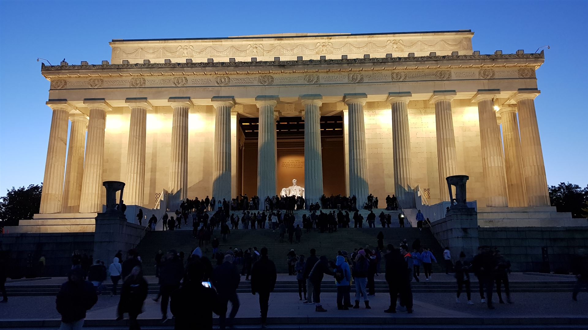 Das Lincoln Memorial ist das herausragende Denkmal am westlichen Ende der National Mall. Hunderte Touristen bevölkern den breiten Treppenaufgang. In einer majestätischen Halle thront ein sechs Meter hoher Abraham Lincoln aus weißem Marmor auf einem riesigen Sockel. Für ein Erinnerungsfoto muss man sich in die Warteschlange stellen. Die Wahl des Gegners der Sklaverei zum 16. Präsidenten war ein Auslöser für den amerikanischen Bürgerkrieg. Lincolns Präsidentschaft dauerte nur vier Jahre. Wenige Monate nach seiner Wiederwahl fiel er einem Attentat zum Opfer (siehe gestern, Ford‘s Theatre). Abraham Lincoln fand seine letzte Ruhestätte in Springfield/IL, wo er viele Jahre lebte und eine Anwaltskanzlei betrieb.