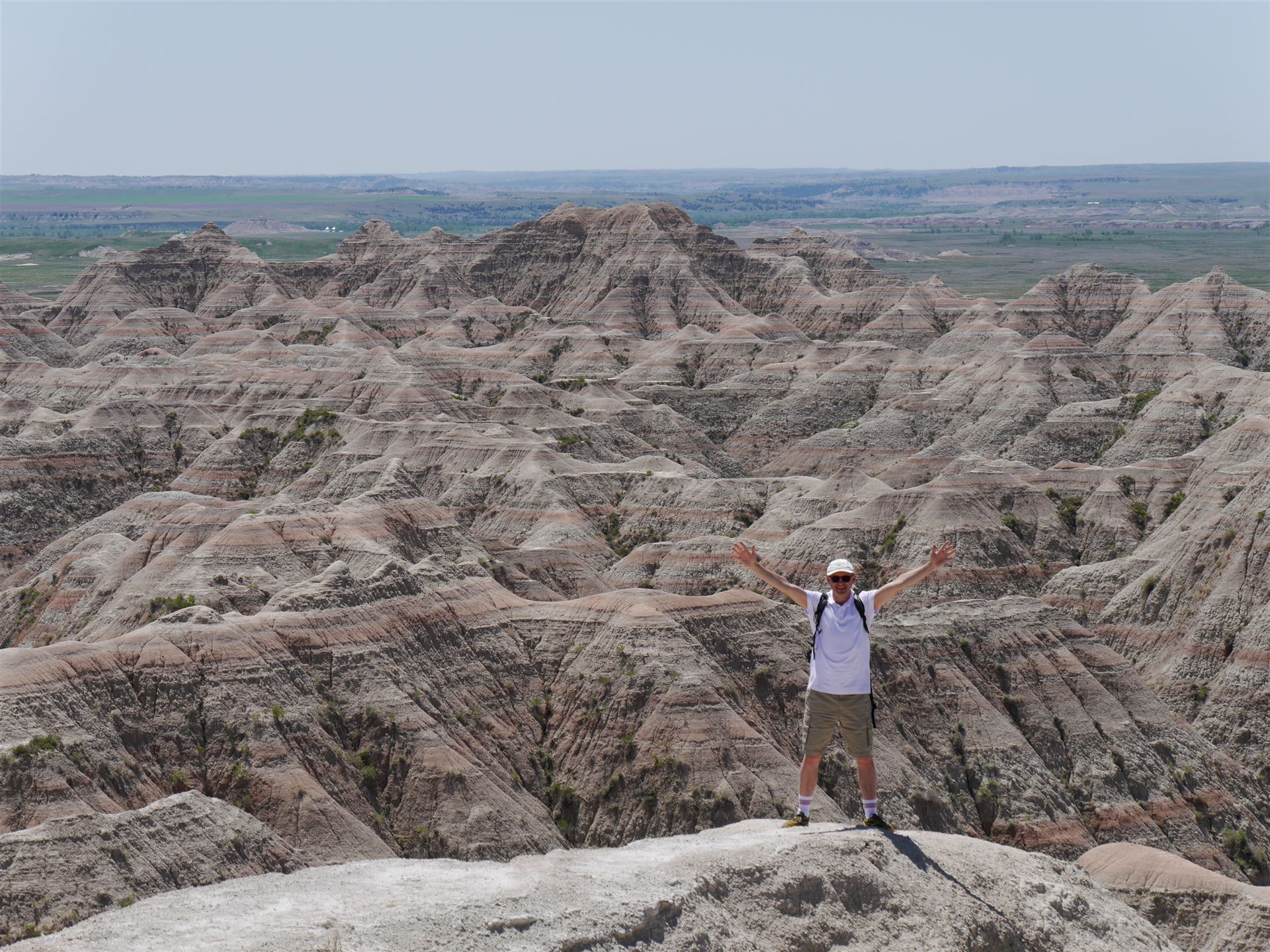 Heute fährst du durch den atemberaubenden Badlands National Park. Von Wall führt der Highway 240 schnurgerade, ohne eine einzige Kurve, 8 Meilen nach Süden bis zur Pinnacles Entrance Station. Du folgst der Badlands Loop Road durch den Park für 22 Meilen bis zum Ben Reifel Visitor Center und der Interior Entrance Station auf der anderen Seite. Unterwegs kannst du an zahlreichen Aussichtspunkten halten und kleinere Spazierwege unternehmen. Dabei ist es durchaus möglich, dass du auf eine Klapperschlange stößt. Die Augen (und Ohren) sollte man also etwas offenhalten. Wie die Badlands, die ihrem Namen alle Ehre machen, aus dem umgebenden Grasland herausragen, ist ein unvergessliches Erlebnis.
