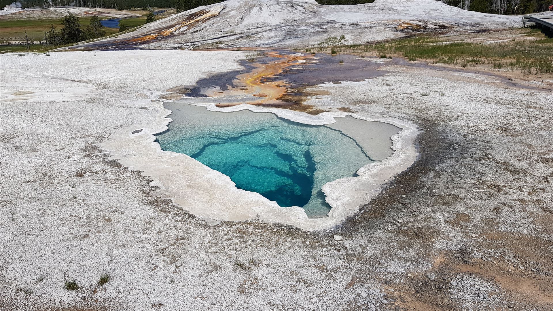Den Abschluss bildet der farbenprächtige Morning Glory Pool, der in grün-orange leuchtet. Das ist zwar faszinierend, allerdings erstrahlte der Morning Glory Pool einst in tiefem blau. Viele dumme oder zumindest gedankenlose Besucher haben unter anderem Münzen in den Pool geworfen, die die Bakterien in dem heißen Pool veränderten und somit auch seine Farbe. Das ist sehr traurig.