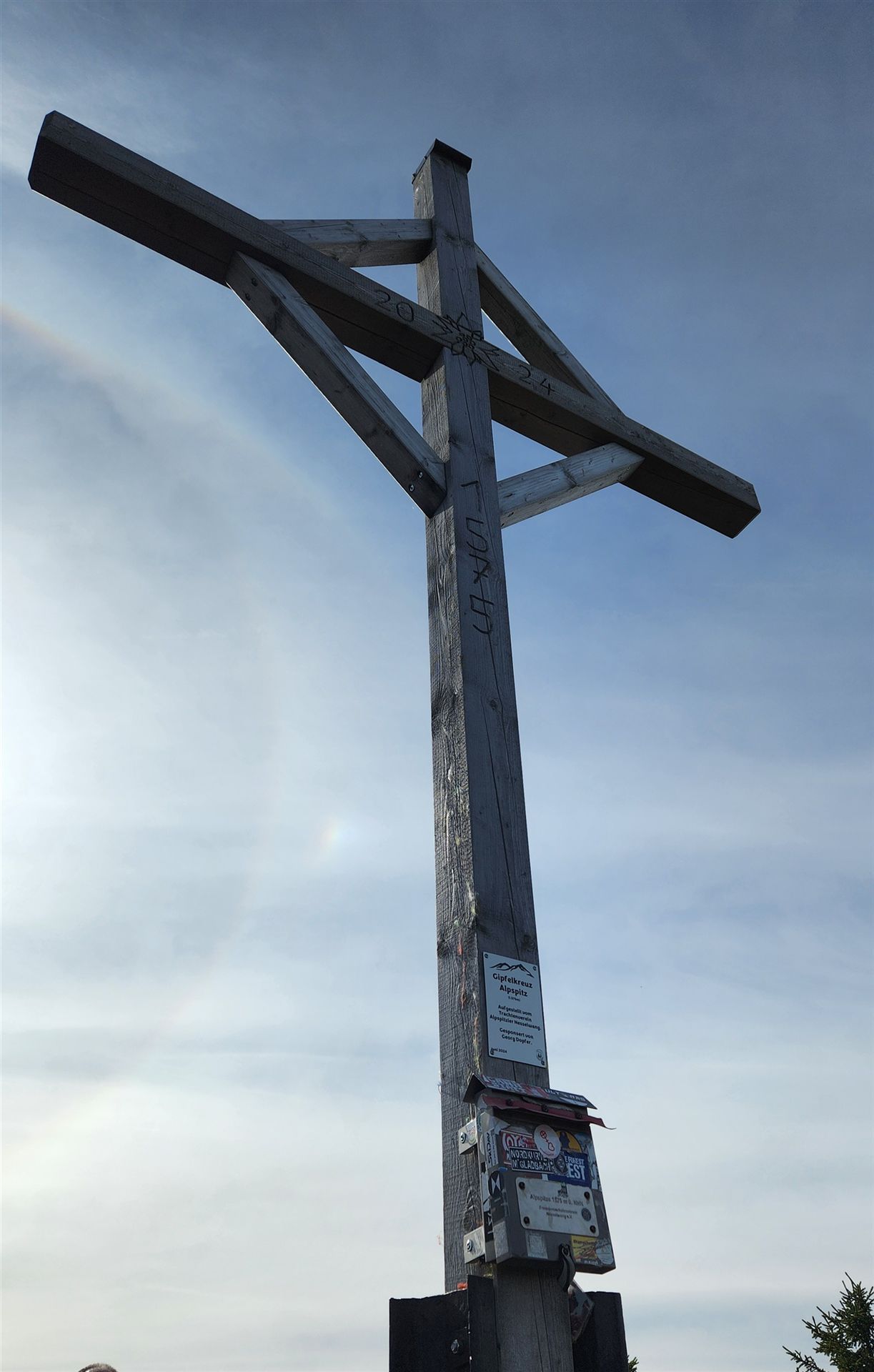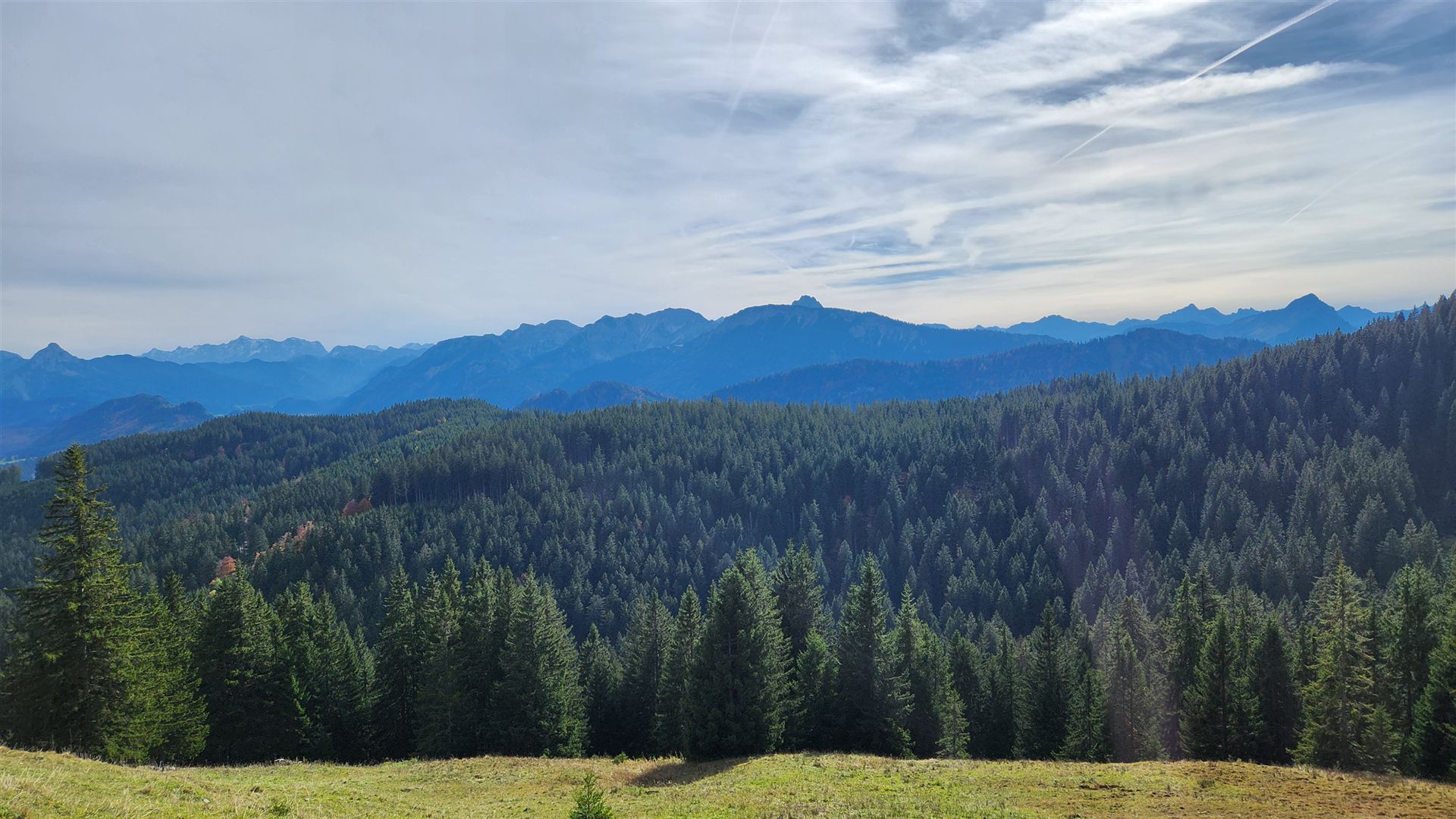 Der weitere Weg zum Gipfel erinnerte mich stark an das Hörnle bei Bad Kohlgrub. Vom Gipfel reicht der Blick insbesondere hinunter zum Grüntensee. Die Aussichtsplattform an der Ostseite des Gipfelaufbaus hätte man sich meines Erachtens sparen können.