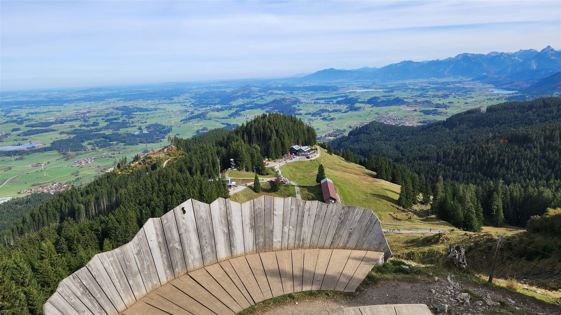Die Nesselwanger Alpspitz ist mit ihren 1575 m Höhe natürlich viel leichter zu erklimmen als die große Schwester in Garmisch-Partenkirchen. Gleichwohl ist der Steig durchaus anstrengend, alternativ bietet sich die Alpspitz-Bahn an. Von der Bergstation sind es dann nur noch 20 Minuten bis zum Gipfelkreuz.