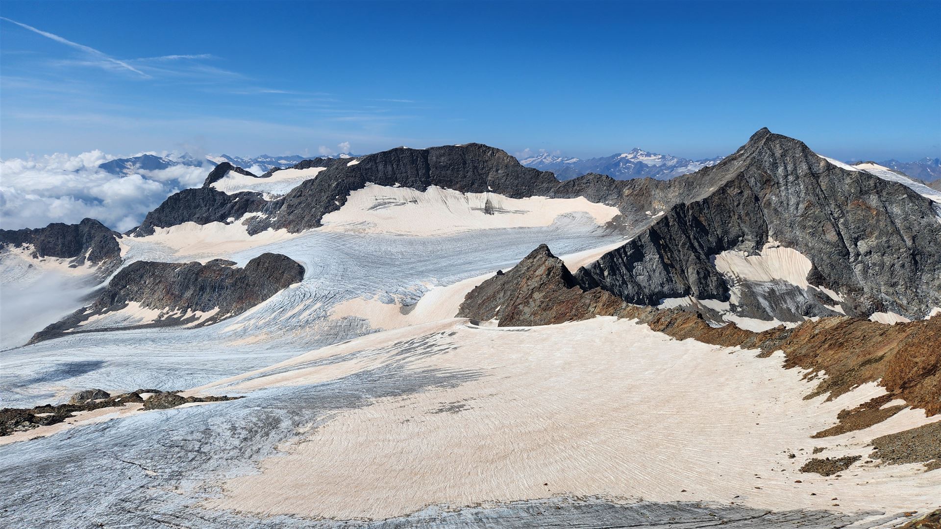 Weißkugel, Wildspitze und Wilder Pfaff, dahinter das Zuckerhütl -