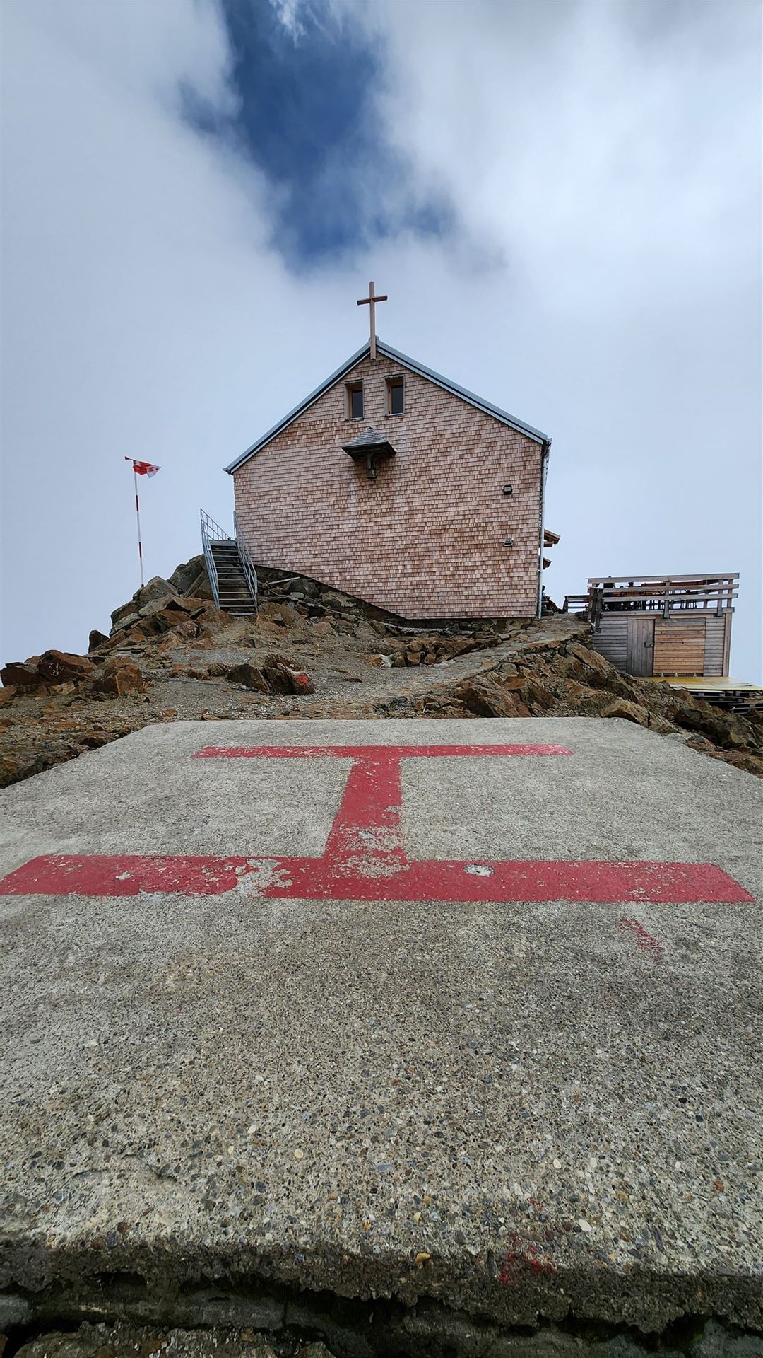 Becherhaus mit Kapelle und Hubschrauberlandeplatz -